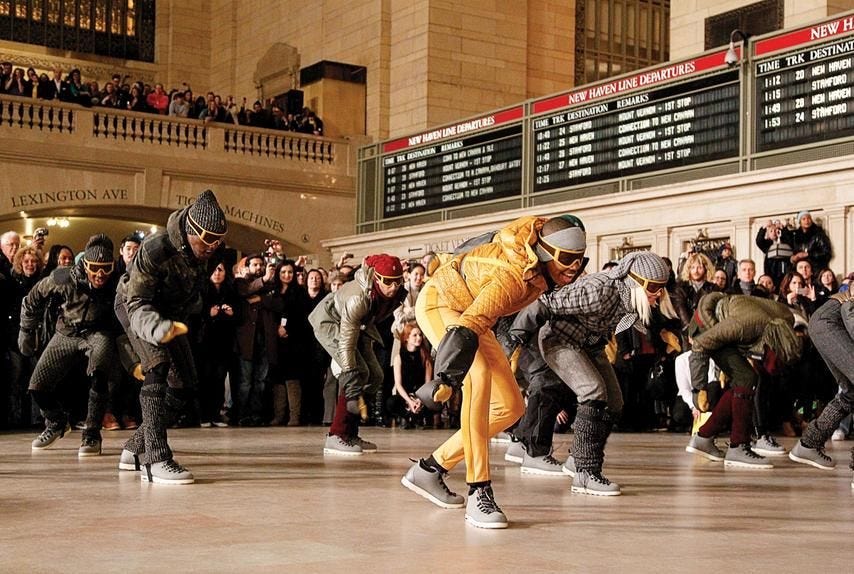 Ruffini wanted to associate Moncler with high fashion, and one of high fashion’s top moments are its runway shows. But puffer coats aren’t typically parts of fashion week. Again, until Moncler. To capture the attention of editors, Ruffini staged large scale performances, including a 363-person flash mob in Grand Central Terminal in 2011, an ice skating show at Central Park’s Wollman Rink in 2015, and a marching-band style takeover of Lincoln Center in 2016.