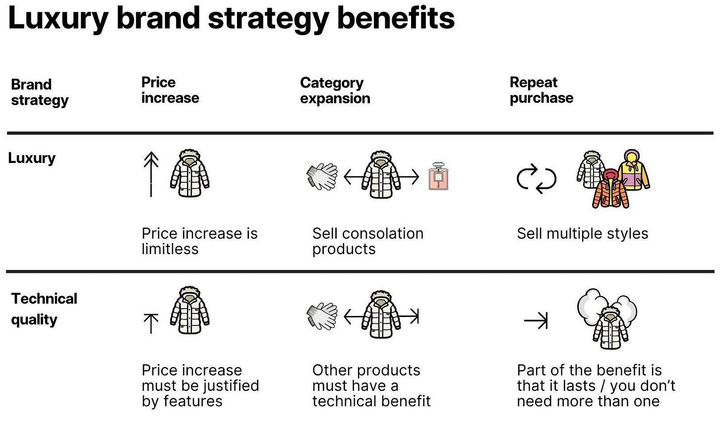 Finally, luxury drives repeat purchase. Do you need two highly technical, arctic-worthy Canada Goose ski jackets? Probably not. Do you need multiple luxury items? You wouldn’t want to be caught in the same Moncler outfit on two ski weekends…