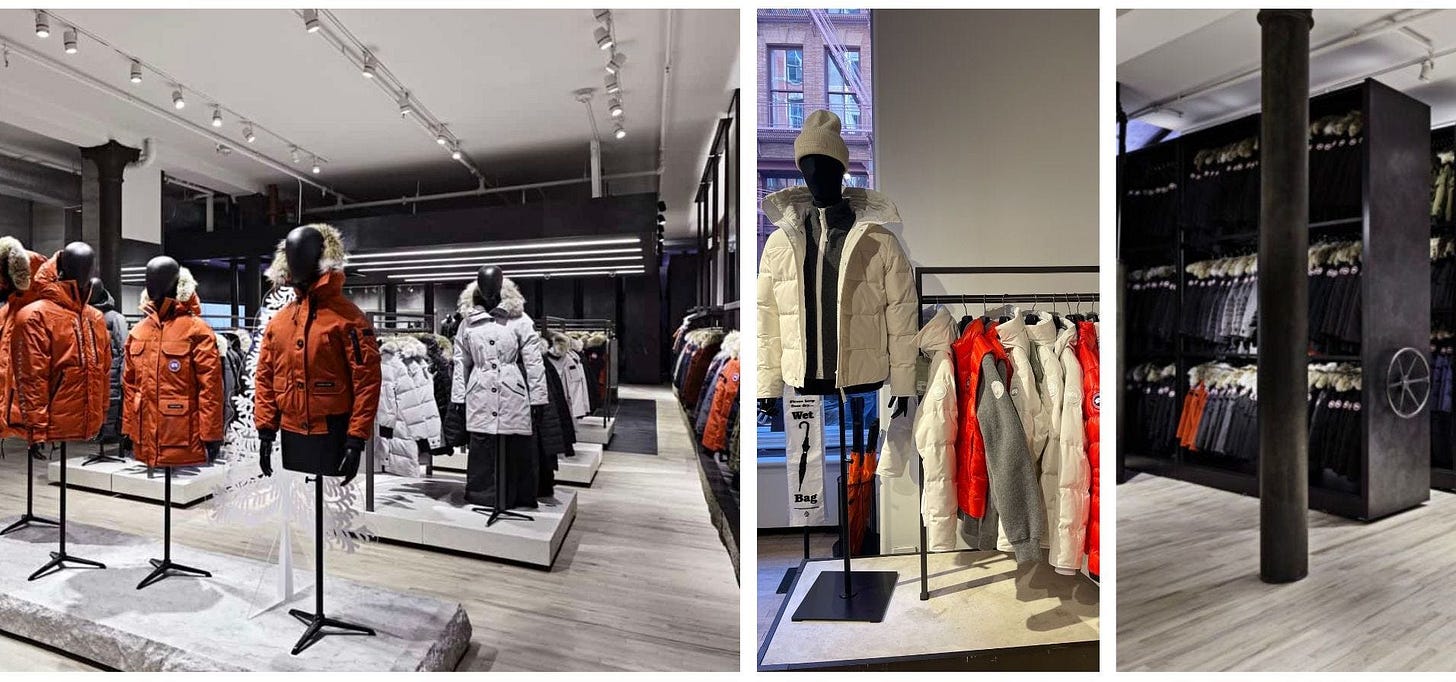 Canada Goose, on the other hand, sells coats. Their Soho store (just a block from Moncler) is reminiscent of the arctic environment their coats are made for.