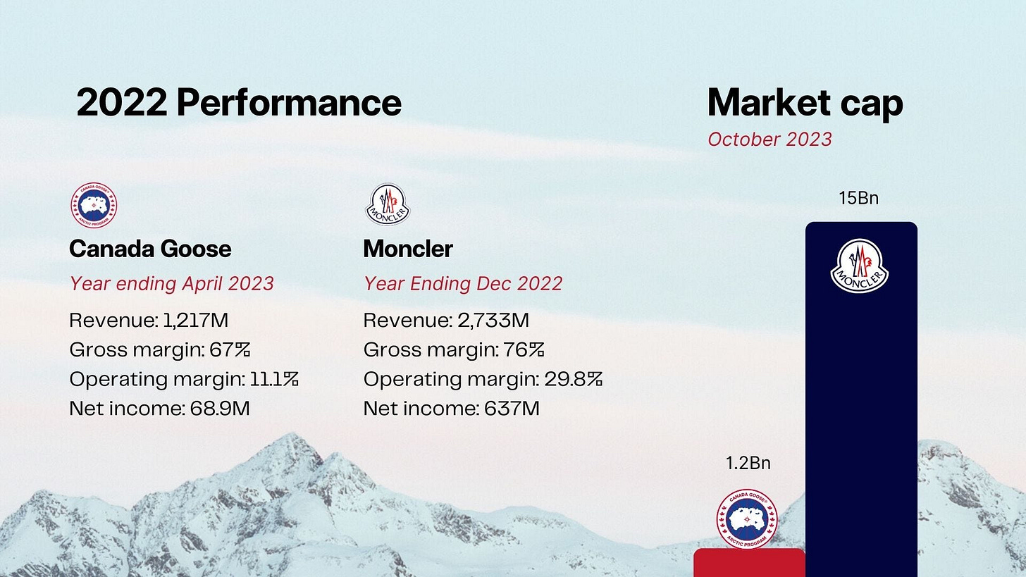 High end coat brands Moncler and Canada Goose have a lot in common. Both were founded in the 1950s (Moncler in 1952 and Canada Goose in 1957), and both expanded with the help of private equity in the 2000s. Both companies later IPO’d within four years of each other, Moncler in 2013 and Canada Goose shortly after in 2017.